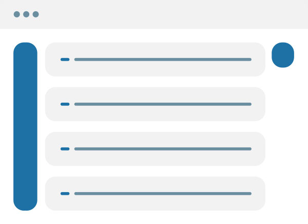 Karmaşık görünen geleneksel tek panelli akordeon menüler yerine, 2 panelli ve sayfaları kategorize eden menüler oluşturduk.
